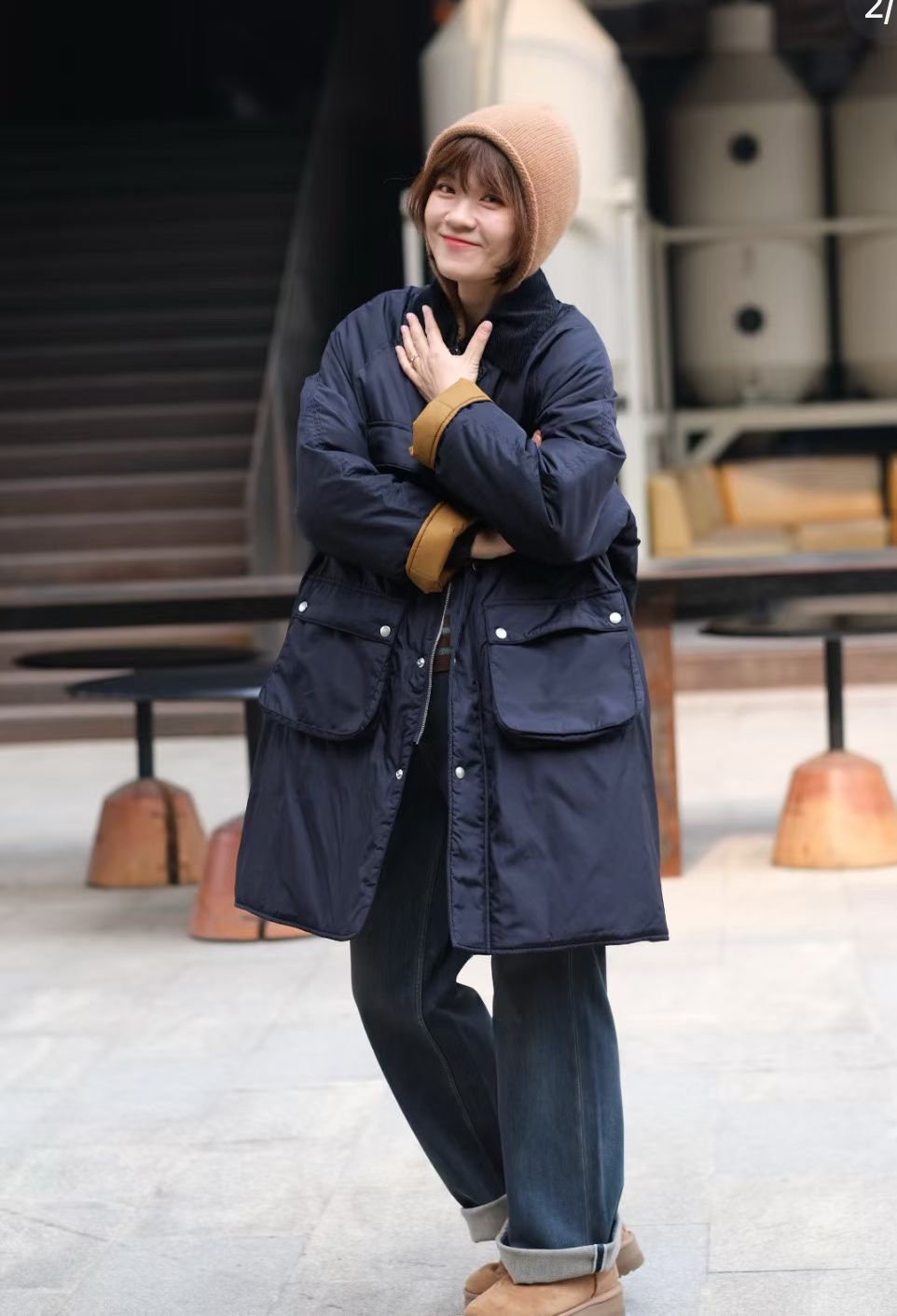 45R燈芯絨領夾棉中長外套(jk2026)