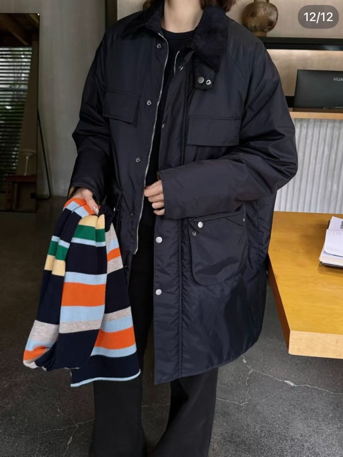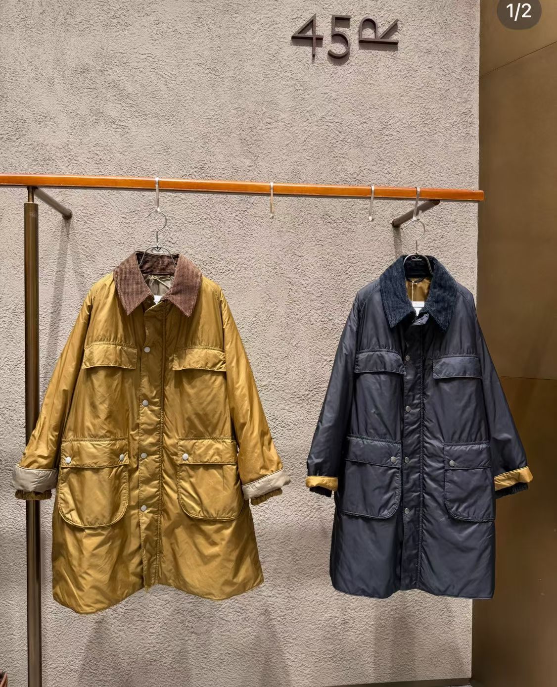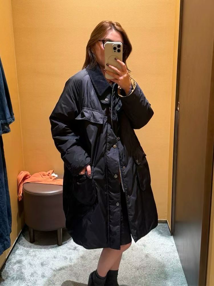45R燈芯絨領夾棉中長外套