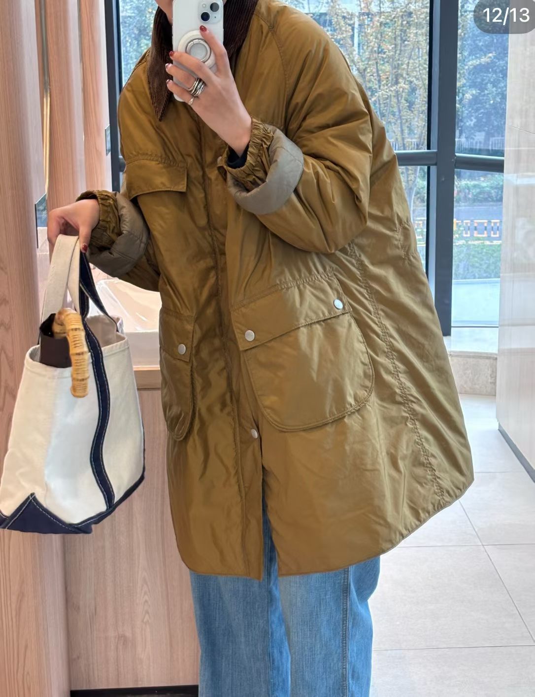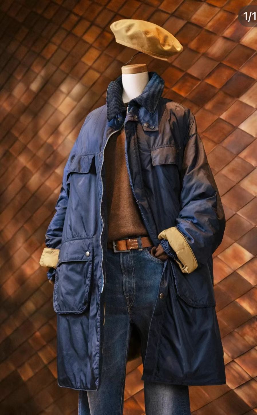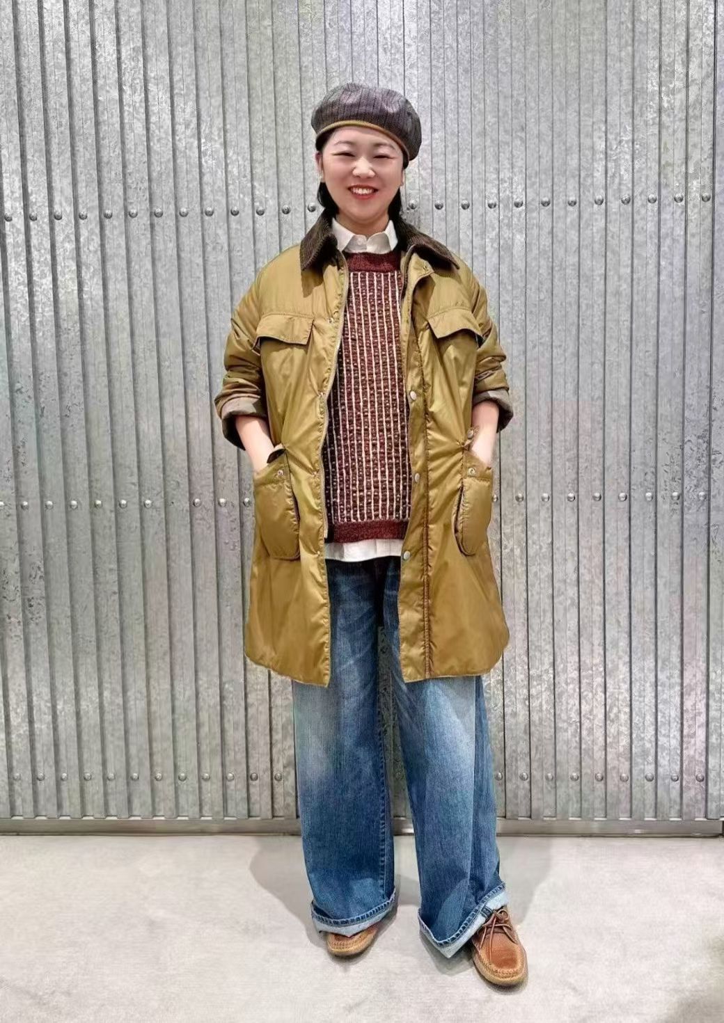 45R燈芯絨領夾棉中長外套