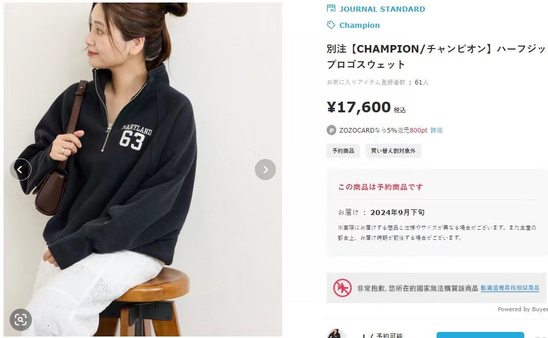 Champion 半拉鏈maryland刺繡衛衣